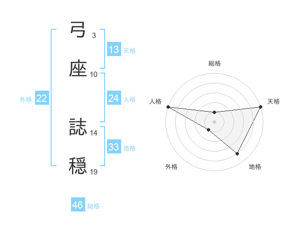 弓座 誌穏さんの天格は13画の5点!