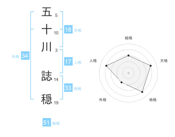 五十川 誌穏さんを姓名の画数から五運を鑑定