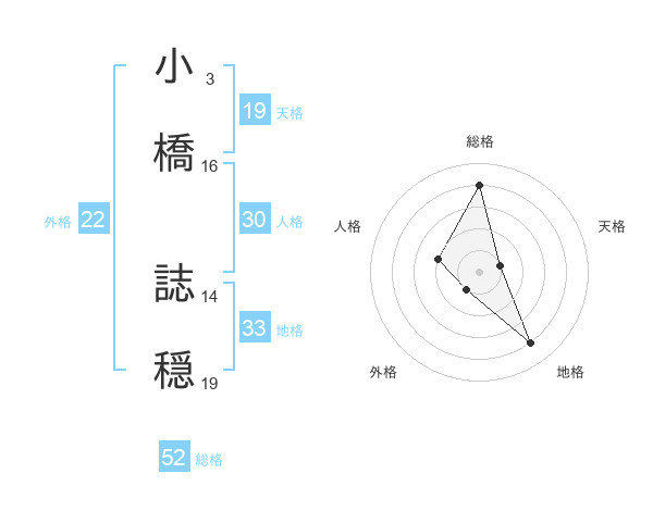 小橋 誌穏さんを姓名の画数から五運を鑑定
