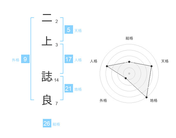 二上 誌良さんの総格は26画の2点!
