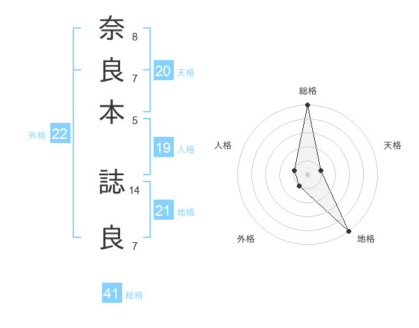 奈良本 誌良さんの地格は21画の5点!
