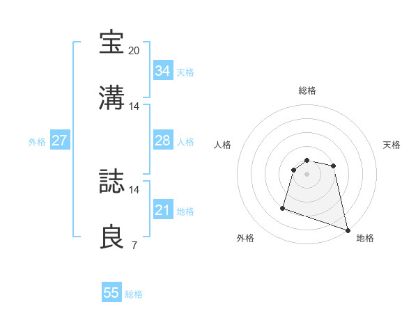 宝溝 誌良さんの地格は21画の5点!