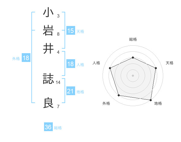 小岩井 誌良さんの天格は15画の4点!