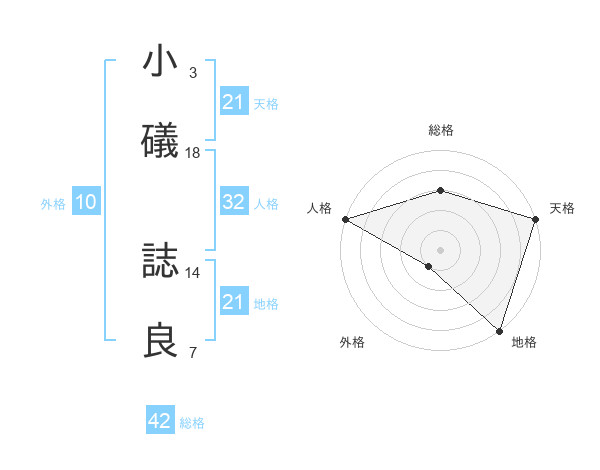 小礒 誌良さんの天格は21画の5点!