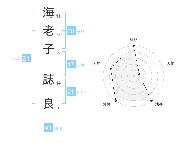 海老子 誌良さんの総格は41画の5点!