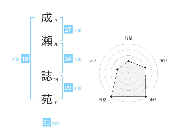 成瀬 誌苑さんを姓名の画数から五運を鑑定