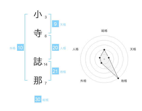 小寺 誌那さんの総格は30画の2点!