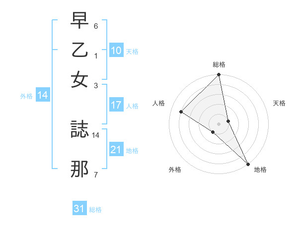 早乙女 誌那さんを姓名の画数から五運を鑑定