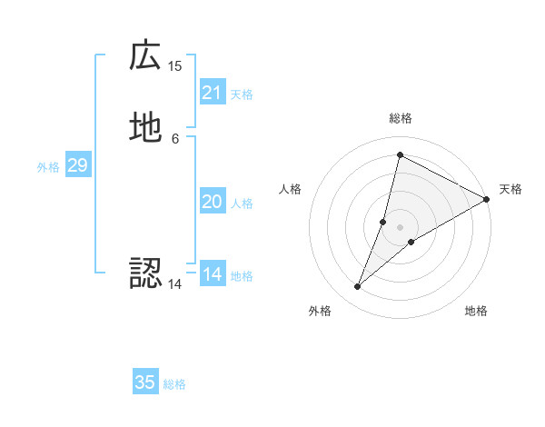 広地 認さんの総格は35画の4点!
