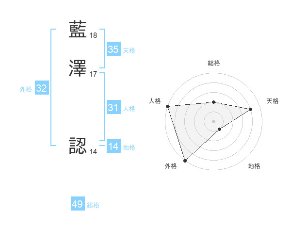 藍澤 認さんの天格は35画の4点!