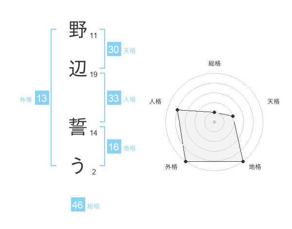 野辺 誓うさんの外格は13画の5点!