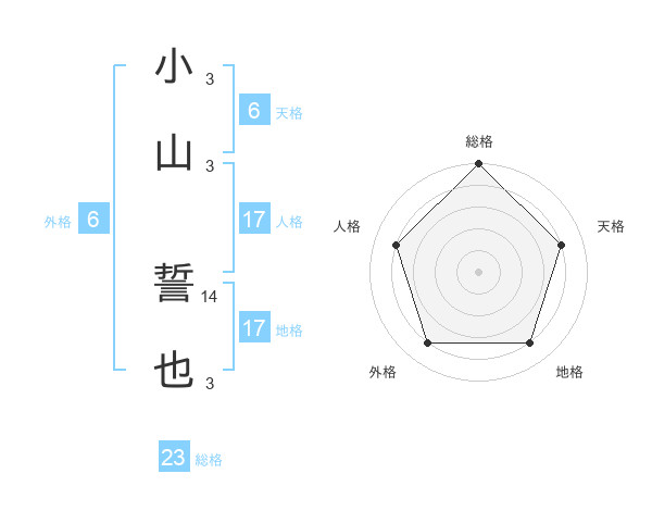 小山 誓也さんの総格は23画の5点!