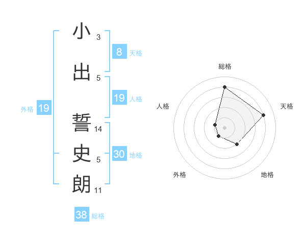 小出 誓史朗さんを姓名の画数から五運を鑑定