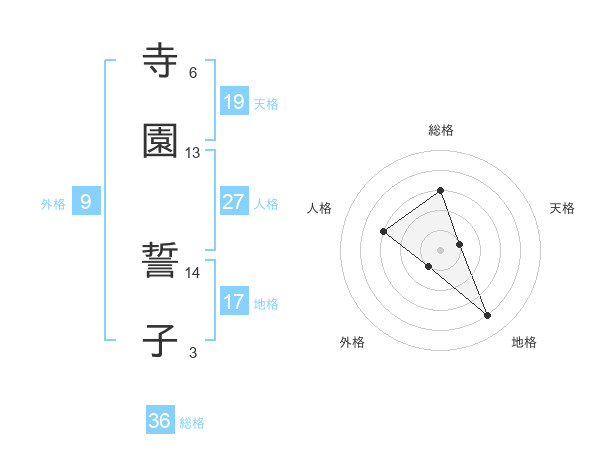寺園 誓子さんの天格は19画の1点!