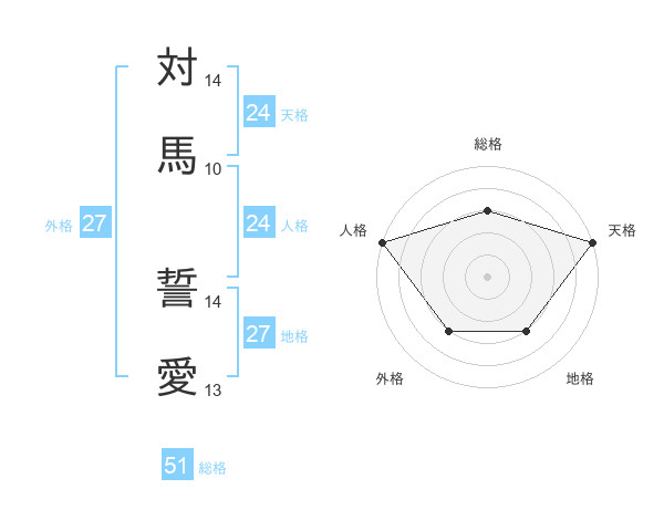 対馬 誓愛さんを姓名の画数から五運を鑑定