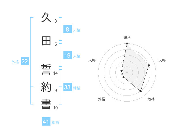 久田 誓約書さんを姓名の画数から五運を鑑定