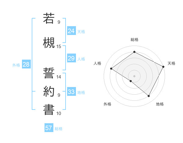 若槻 誓約書さんの総格は57画の4点!