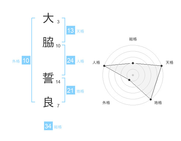 大脇 誓良さんを姓名の画数から五運を鑑定