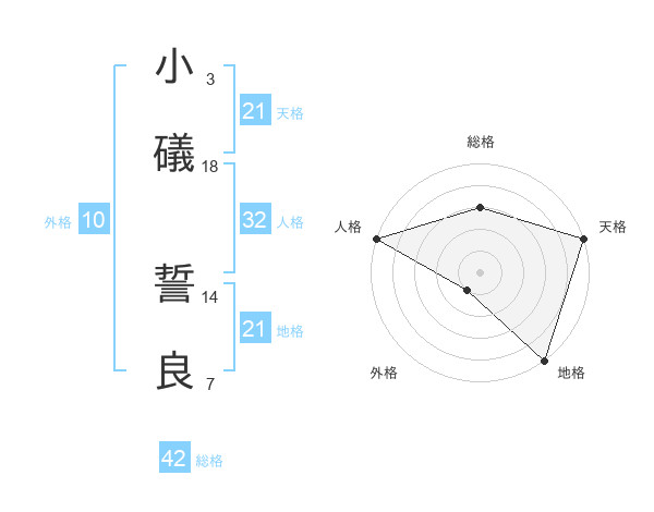 小礒 誓良さんの天格は21画の5点!
