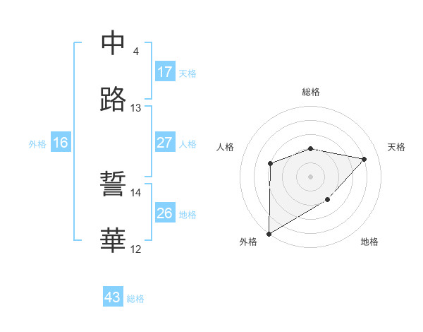 中路 誓華さんの外格は16画の5点!