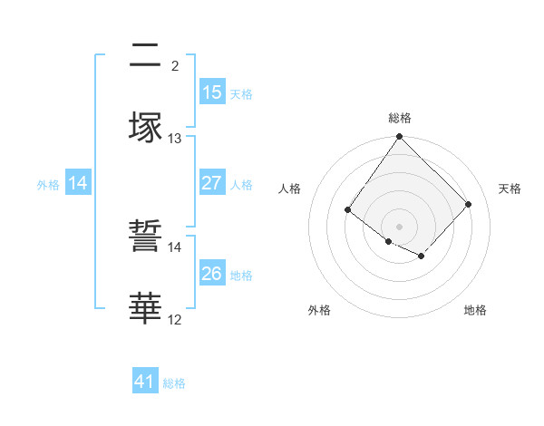二塚 誓華さんの総格は41画の5点!
