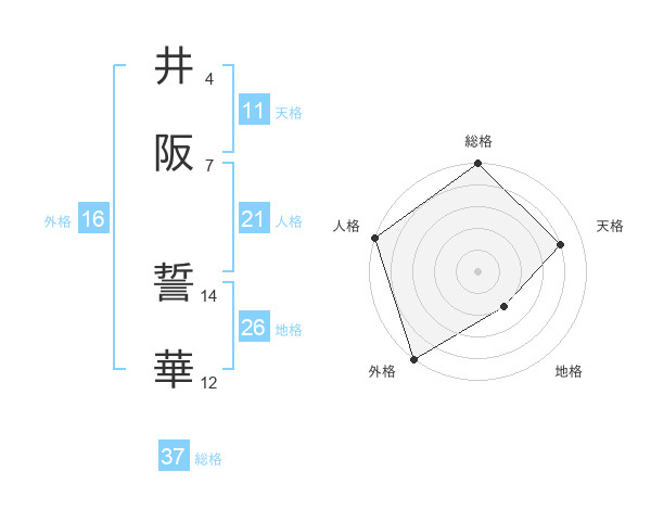 井阪 誓華さんを姓名の画数から五運を鑑定