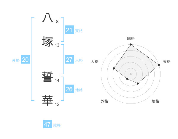 八塚 誓華さんを姓名の画数から五運を鑑定