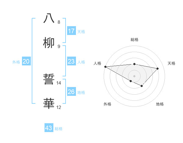 八柳 誓華さんの総格は43画の2点!