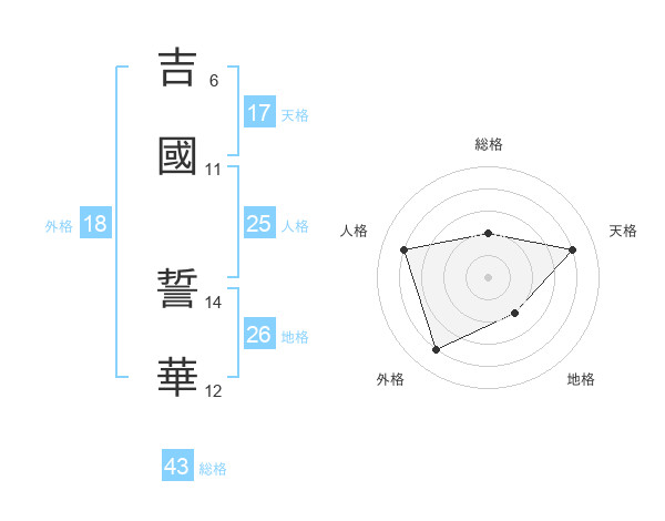 吉國 誓華さんを姓名の画数から五運を鑑定
