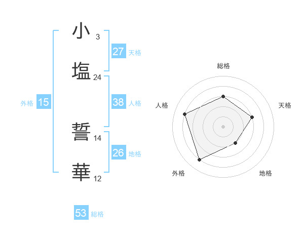 小塩 誓華さんを姓名の画数から五運を鑑定