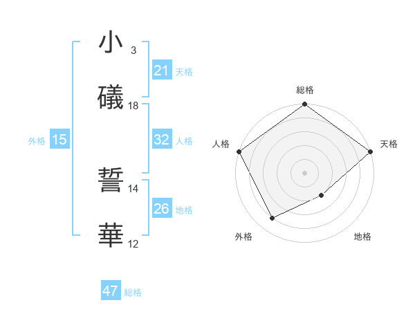 小礒 誓華さんを姓名の画数から五運を鑑定