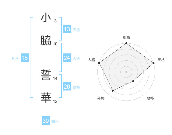小脇 誓華さんの総格は39画の5点!