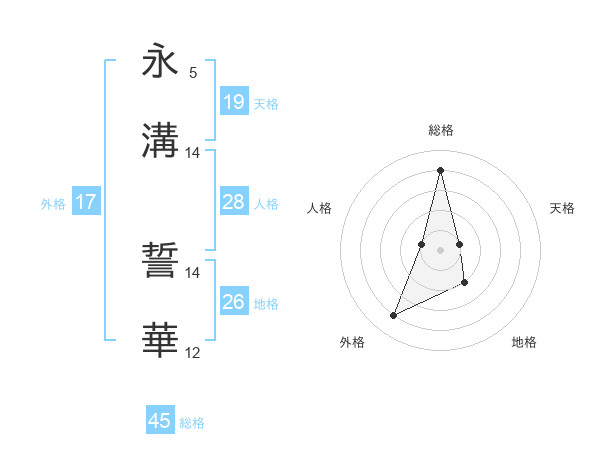 永溝 誓華さんの総格は45画の4点!