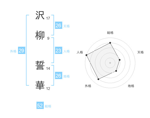 沢柳 誓華さんの総格は52画の4点!