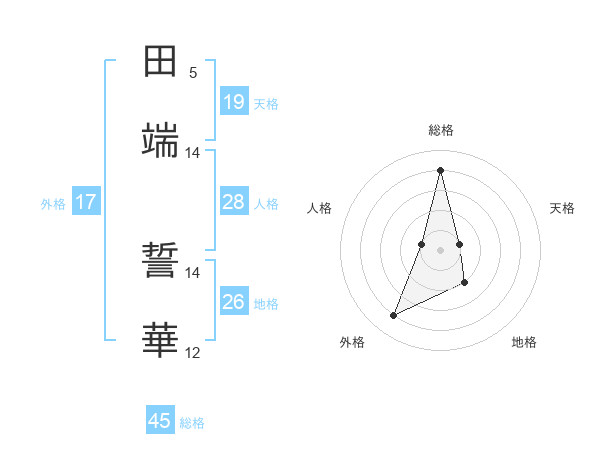 田端 誓華さんの総格は45画の4点!