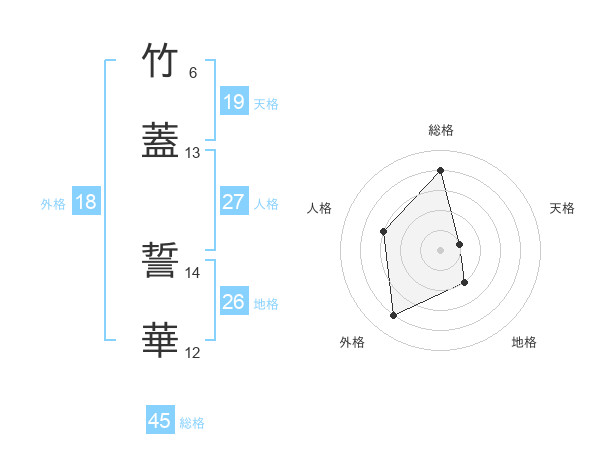 竹蓋 誓華さんを姓名の画数から五運を鑑定