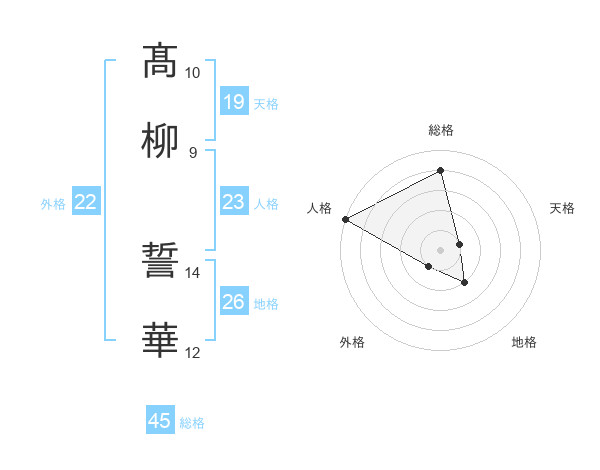 髙柳 誓華さんの総格は45画の4点!