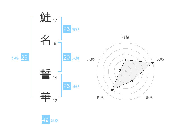 鮭名 誓華さんの天格は23画の5点!