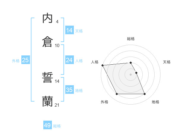 内倉 誓蘭さんを姓名の画数から五運を鑑定