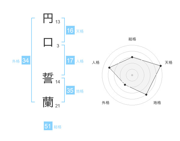 円口 誓蘭さんの総格は51画の3点!