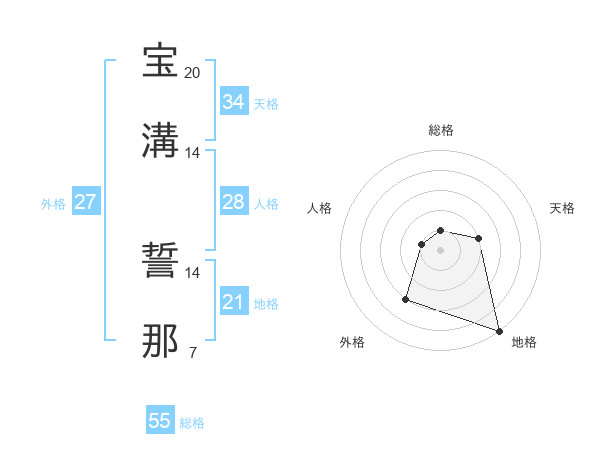 宝溝 誓那さんを姓名の画数から五運を鑑定