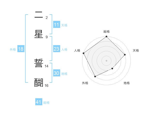 二星 誓醐さんを姓名の画数から五運を鑑定