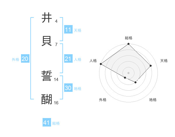 井貝 誓醐さんを姓名の画数から五運を鑑定