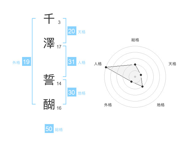 千澤 誓醐さんの総格は50画の2点!