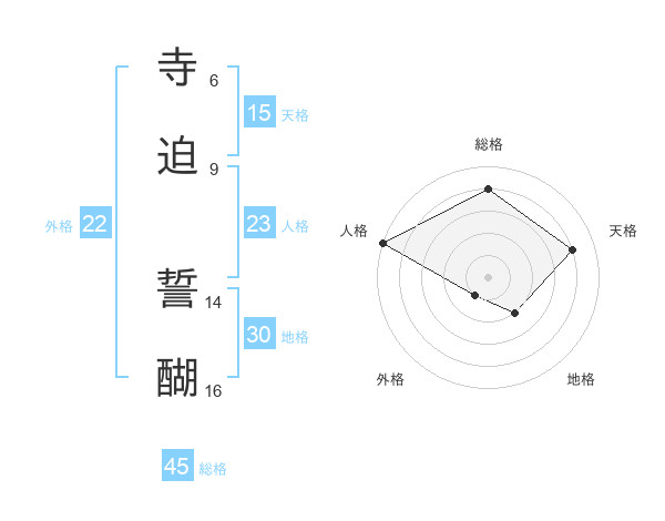 寺迫 誓醐さんを姓名の画数から五運を鑑定