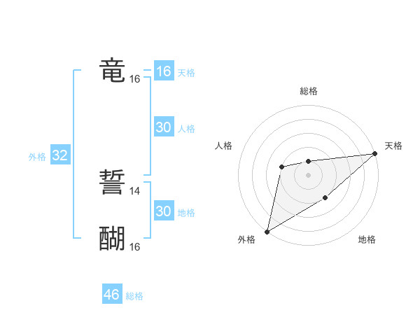 竜 誓醐さんの天格は16画の5点!