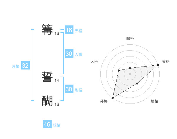 篝 誓醐さんの地格は30画の2点!