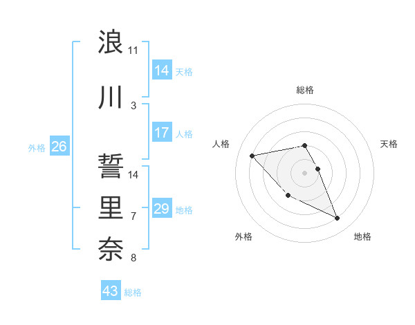 浪川 誓里奈さんの総格は43画の2点!