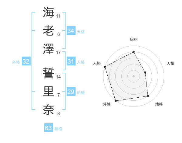 海老澤 誓里奈さんを姓名の画数から五運を鑑定