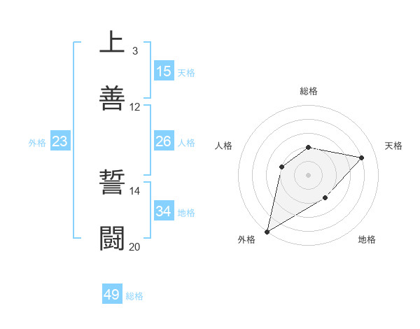 上善 誓闘さんの総格は49画の2点!
